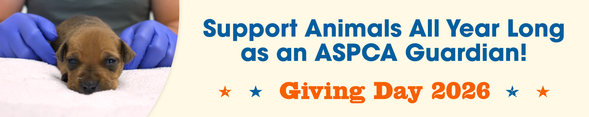 The best way to be there for animals and support our lifesaving efforts all year long is by becoming an ASPCA Guardian with an automatic monthly gift! Support from our dedicated Guardians helps us continue to make a life-changing impact on animals and gives even more animals the second chances they deserve. And for a limited time, when you become a Guardian at $19 a month, you can receive our exclusive Giving Day T-shirt as a thank you for your commitment to animals. Please start your monthly gift today to make a big difference in the lives of our nation’s most vulnerable animals.